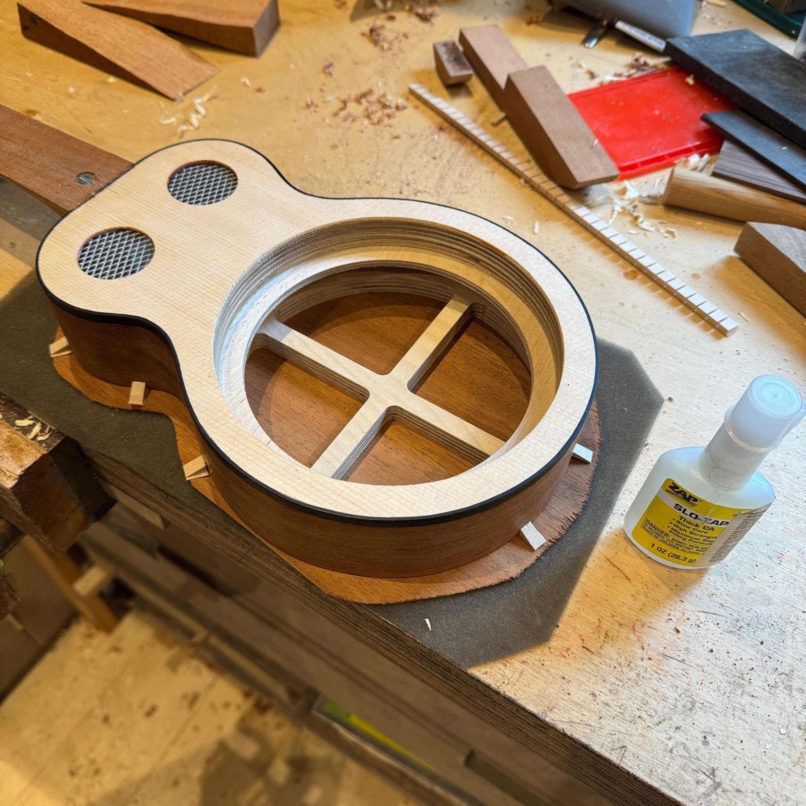 And some excess glue was cleaned off and removed. Paralell to this I got cracking on the fretboard, but that’ll come in the next post. Fanx for reading!